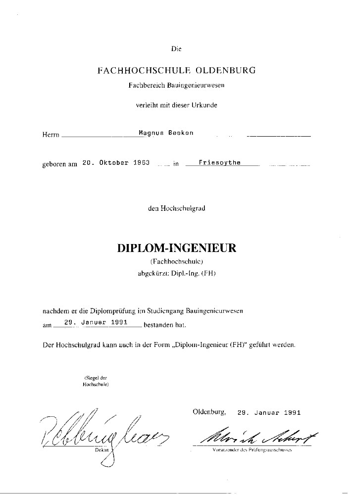 Seit Januar 1996 führt er eine eigene Firma, die "Magnus Beeken GmbH - Sandgrube und Immobilien".