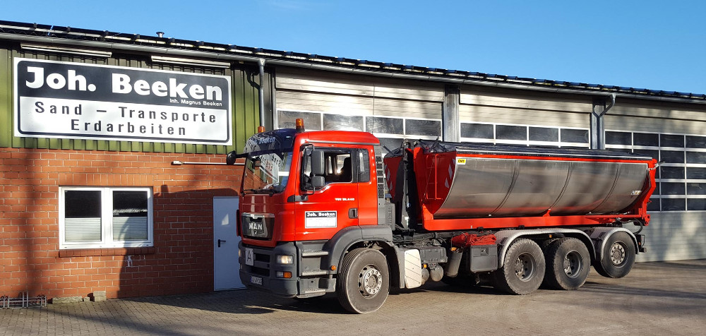 Seit dem 01.01.1998 führt Dipl.Ing. Magnus Beeken das Unternehmen in zweiter Generation. Wertvolle Unterstützung erfährt er in seiner Frau Monika, die mit einer weiteren Kraft das Büro leitet und die Fäden des Betriebes fest in der Hand hat. Der Betrieb Beeken verfügt heute über zwei große Sandabbaugebiete. Das erste ist in Bösel am Steinbergsweg gelegen und hat eine Größe von ca. 68 Hektar. Dort wird im Nassabbauverfahren der Sand an die Oberfläche gespült. Gemäß der Auflage des Landkreises Cloppenburg, wurde an der Südseite des Abbaugebietes ein Biotop angelegt. Auf Dauer wird hier für Bösel ein attraktiver Natursee, kein Badesee, entstehen. Das zweite Abbaugebiet liegt in Kirchhatten. Hier wird im Trockenabbau der Sand abgefahren.