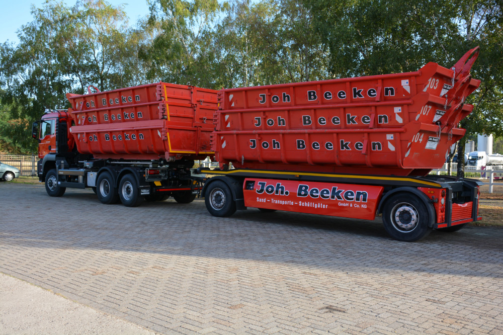 Erweiterung des Leistungsspektrums um Asphalt-Transporte. Zu diesem Zweck wurde eigens ein weiteres Fahrzeug – ausgestattet mit einer Thermomulde – angeschafft. Ebenso konnte ein weiterer Mitarbeiter als Fahrer eingestellt werden. Das Unternehmen Joh.Beeken beschäftigt nun mehr als 50 Mitarbeiterinnen und Mitarbeiter. Auch der Maschinenpark hat sich seit Anfang der 90er Jahre mehr als verdoppelt.